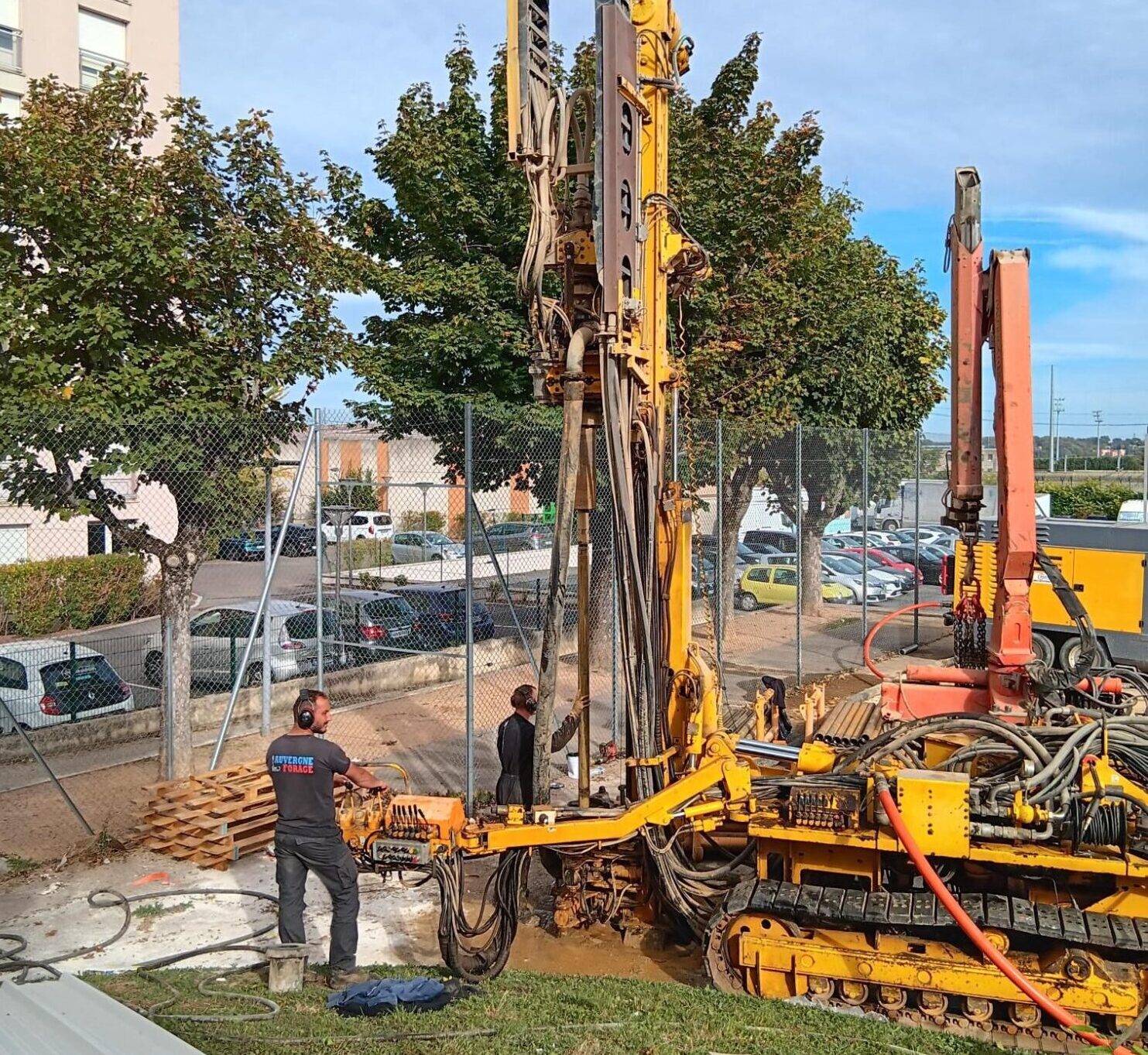 L’élément technique seyant réside dans l’installation d’un système de chauffage par géothermie. Sous les terrains de basket extérieurs, des sondes ont été immergées à 130 mètres de profondeur (température du sol : 15°/16°) pour aller capter la chaleur du sol via un fluide caloporteur qui alimente ensuite la pompe à chaleur d’où part l’eau chaude vers les radiateurs. Une énergie calorifique gratuite et inépuisable.