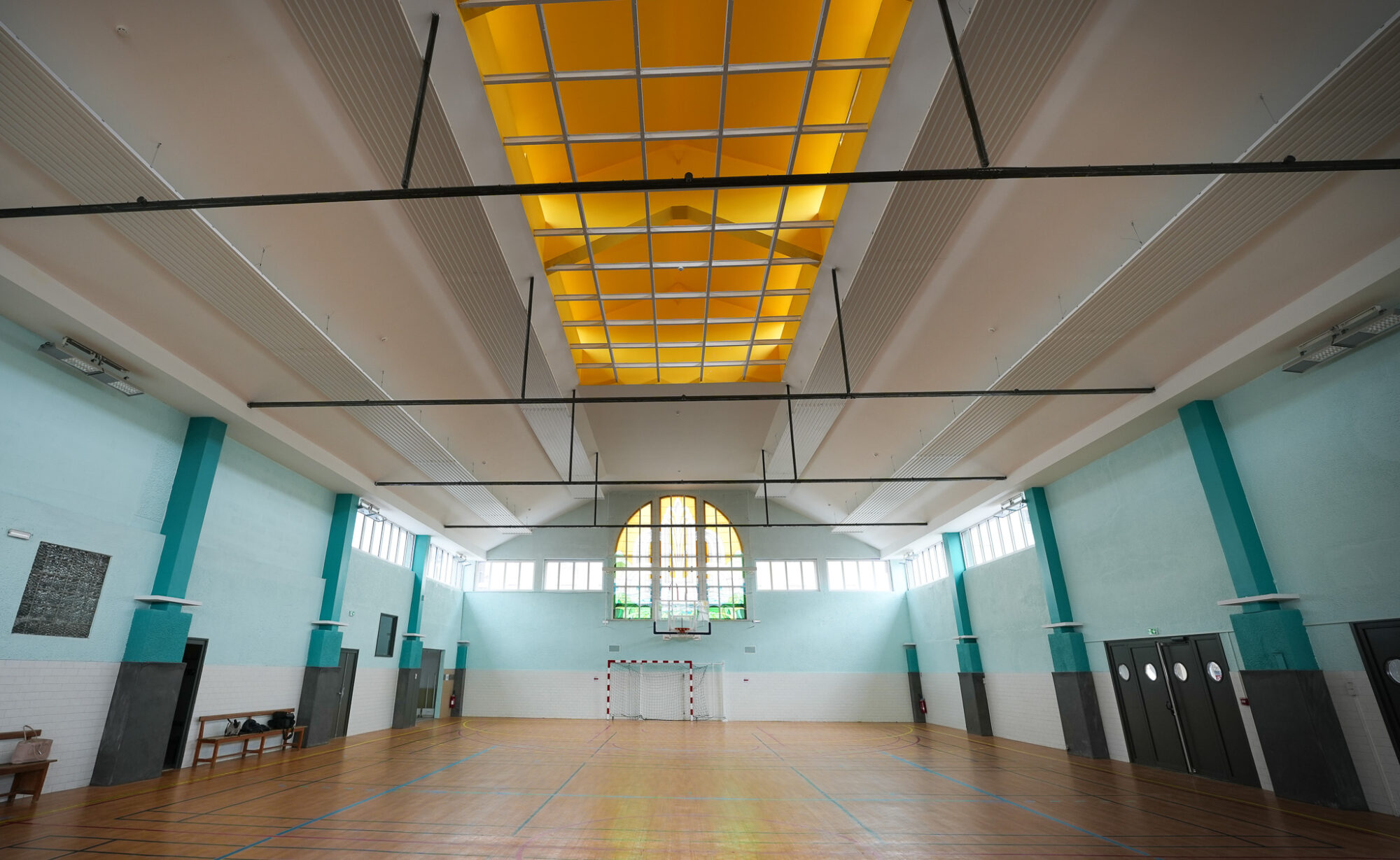 Au-delà de l’aspect esthétique, la Municipalité a souhaité revoir complètement l’isolation thermique de ces locaux presque centenaires ! Reprise de la toiture, étanchéité des terrasses, réfection de l’isolation des façades par l’extérieur, remplacement des menuiseries extérieures. L’accessibilité a été traitée par l’adjonction d’un ascenseur. La restauration a été plus loin avec la réfection du gymnase, du hall, du stand de tir en sous-sol et lamise en place d’un éclairage par leds.