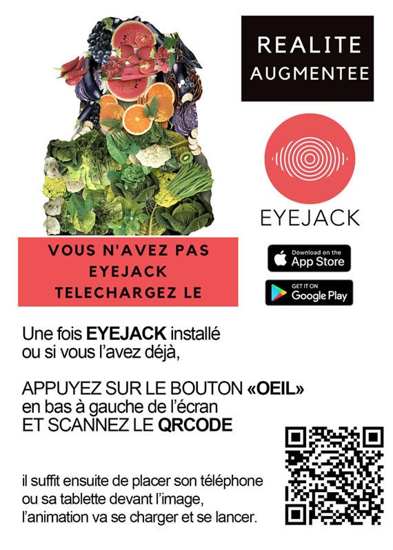 Pour voir les vidéos de réalité augmentée, téléchargez l’application Eye Jack puis scannez le QR code disponible sur les œuvres.