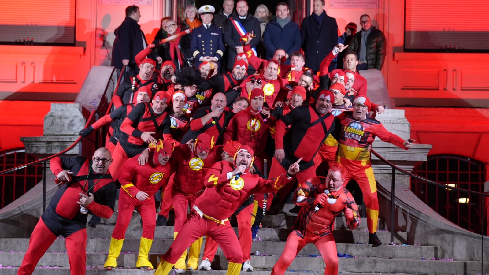 Sur le thème des bandes dessinées, les Conscrits de la 5 ont enflammé la Rue Nationale, pour finir sur le Parvis de l’Hôtel de Ville.