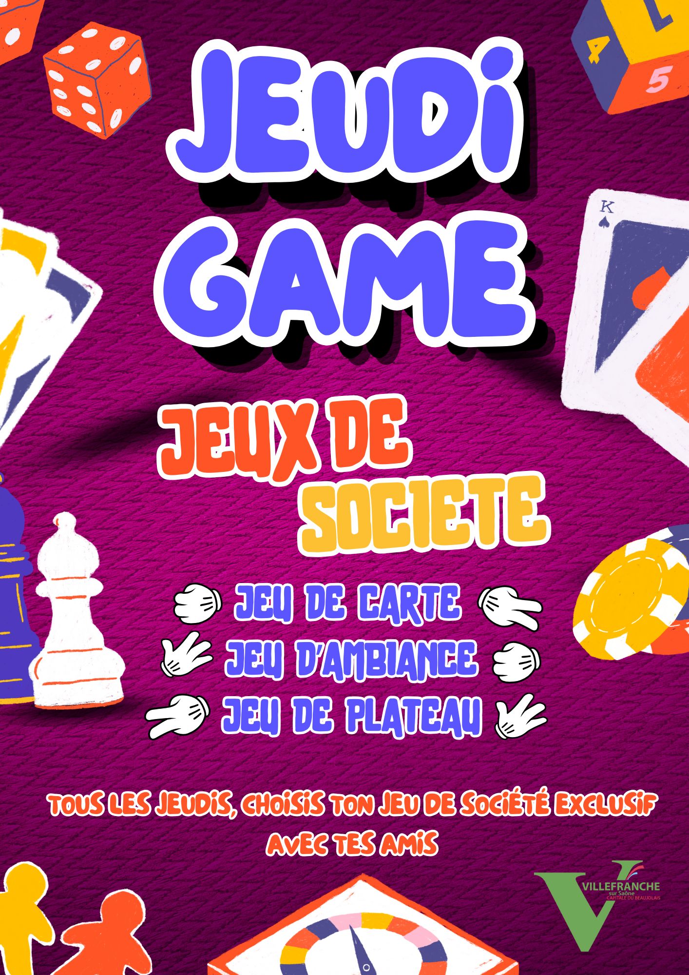 - Jeudi Game : jeux encadrés (de société, de stratégie, de coopération) visant à développer l’esprit d’équipe, la concentration et le plaisir de jouer ensemble.